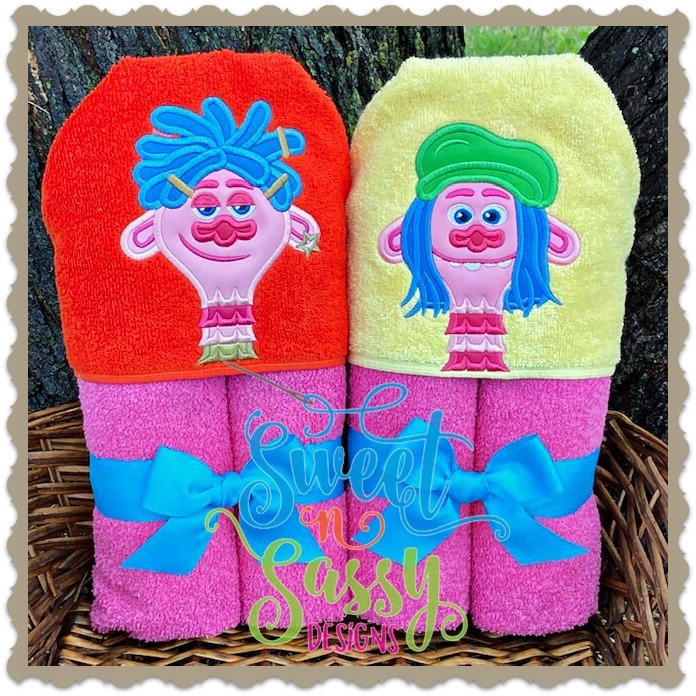 This listing includes the Funk Twin Troll & Funk Prince Troll Embroidery Designs. This is not a finished product, but only the digitized designs. Any photos of finished products associated with this post are for inspiration purposes only.
