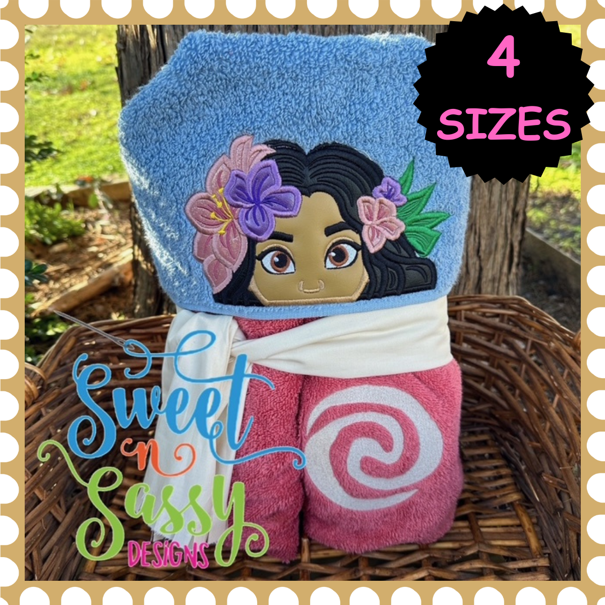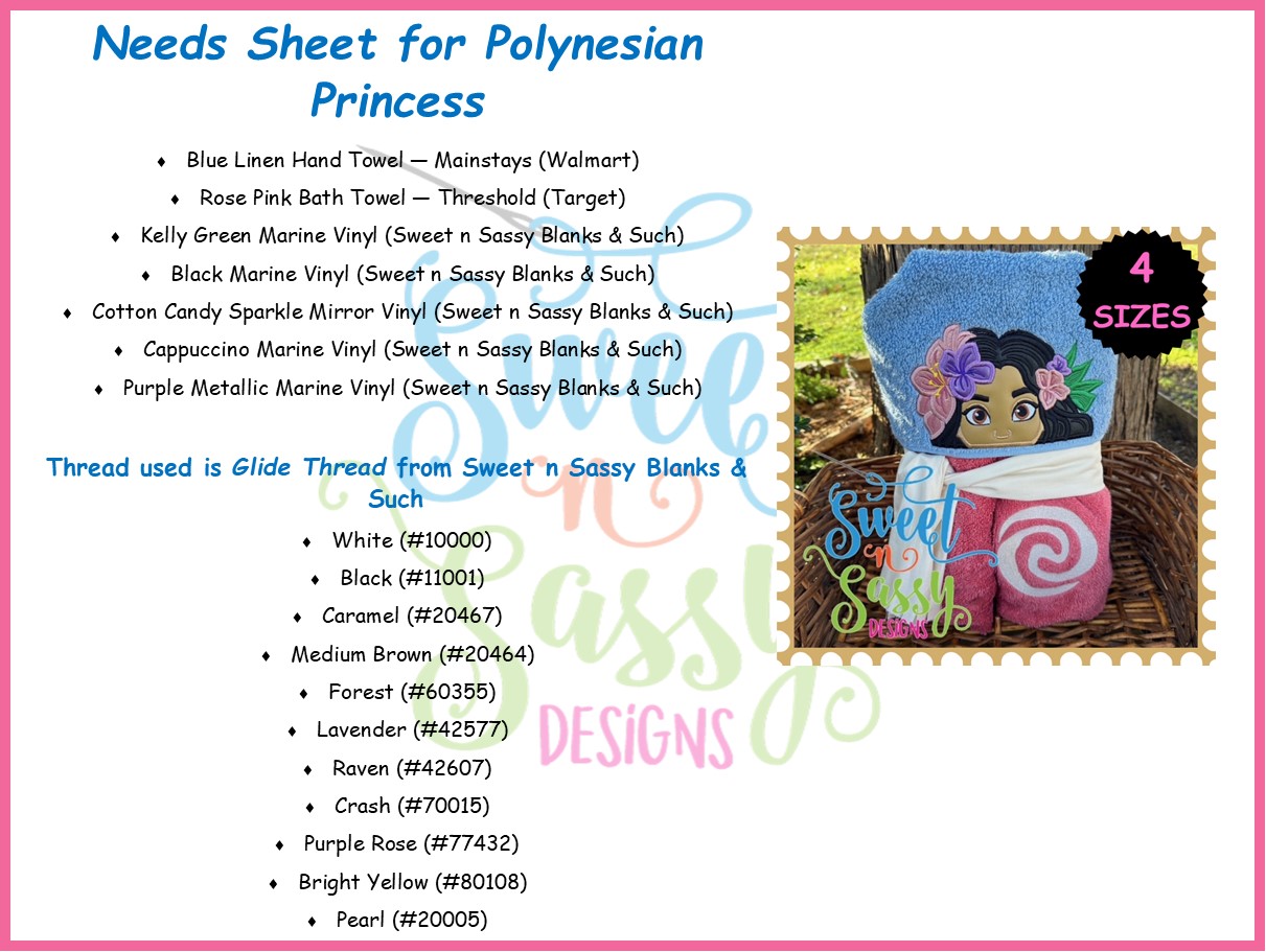 This listing includes the Polynesian Princess Embroidery Design and its coordinating add-on. This is not a finished product, but only the digitized designs. Any photos of finished products associated with this post are for inspiration purposes only.