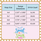 The zipped file includes files for 4×4, 5×7, 8×8, & 6×10 hoops (main design), 4×4 and 5×7 hoop sizes for add-on, SVG Cut Files for all hoop sizes, and a color layout (sequence chart), with the following formats: